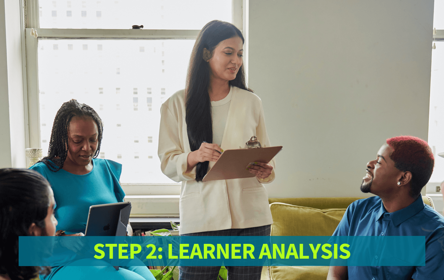 Learner Analysis identifies the learners' knowledge, skills, attitudes, learning styles, and other relevant information to determine their needs and gaps, as well as the learning objectives most important to achieve during the training.